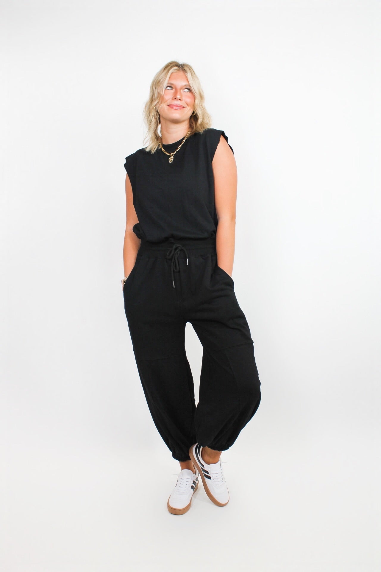 Lauren 5'8 wearing the black size small.Emily is 5'6 wearing the green size small.- Drawstring Waist.- Cuffed Pant.- Tall Girl Friendly.
