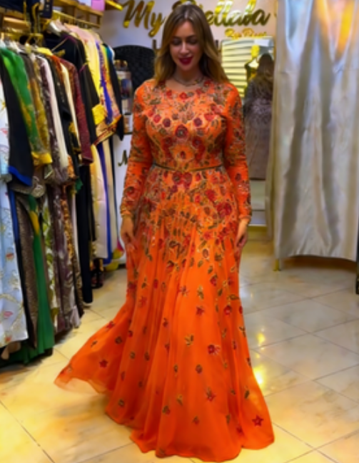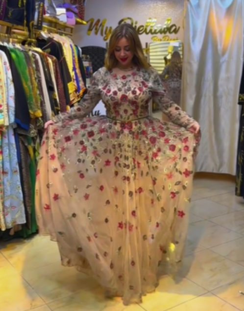 🌸【S-5XL】Długa suknia z trenem i haftem kwiatowym