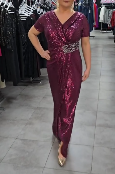 Suknia srebrnymi sequinami